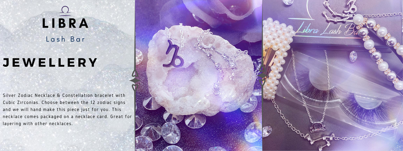 Pure Silver Zodiac Necklace and Constellation Bracelet with cubic Zirconias